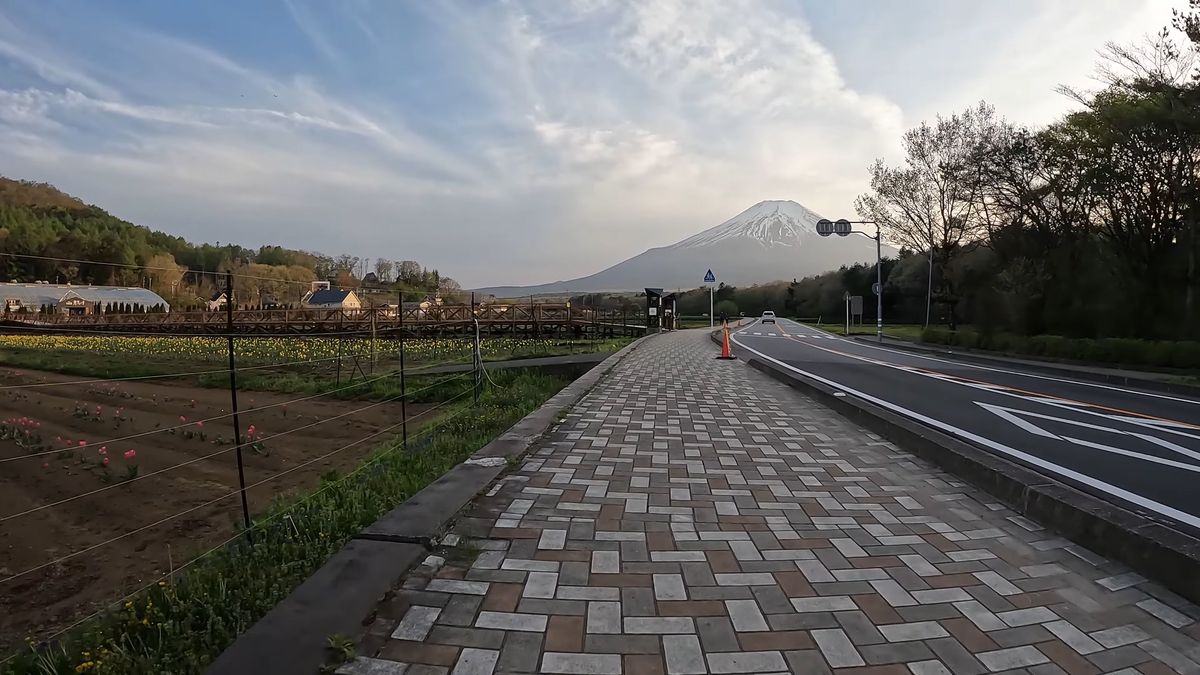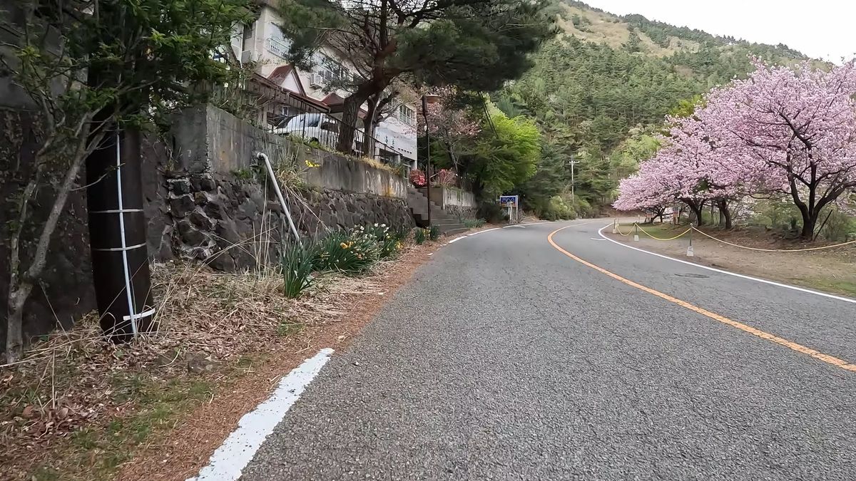 I was able to reach lake Saiko following the road. In this lake, I encountered my first and last flat of the ride. I stopped by an empty car parking lot to change my rear wheel's inner tube. I also found the culprit—a sharp metal thorn that pierced the tire. After the ordeal, I continued the ride and saw some Sakura trees in full bloom. I was lucky to see those since Sakura season was supposed to be over. I even forgot to take a video of it and only captured the end part.