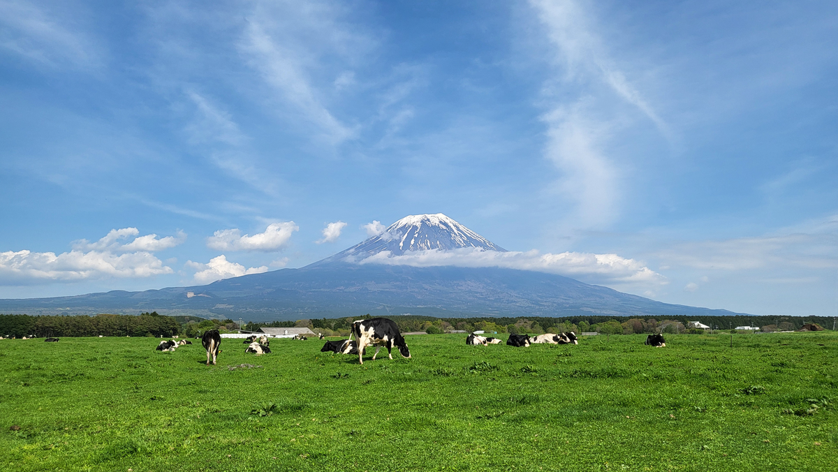 It's the first time for me to see cows with black and white colors, like the one you seen in cartoons and milk boxes. They were so cute chilling around with Mt. Fuji at the background.