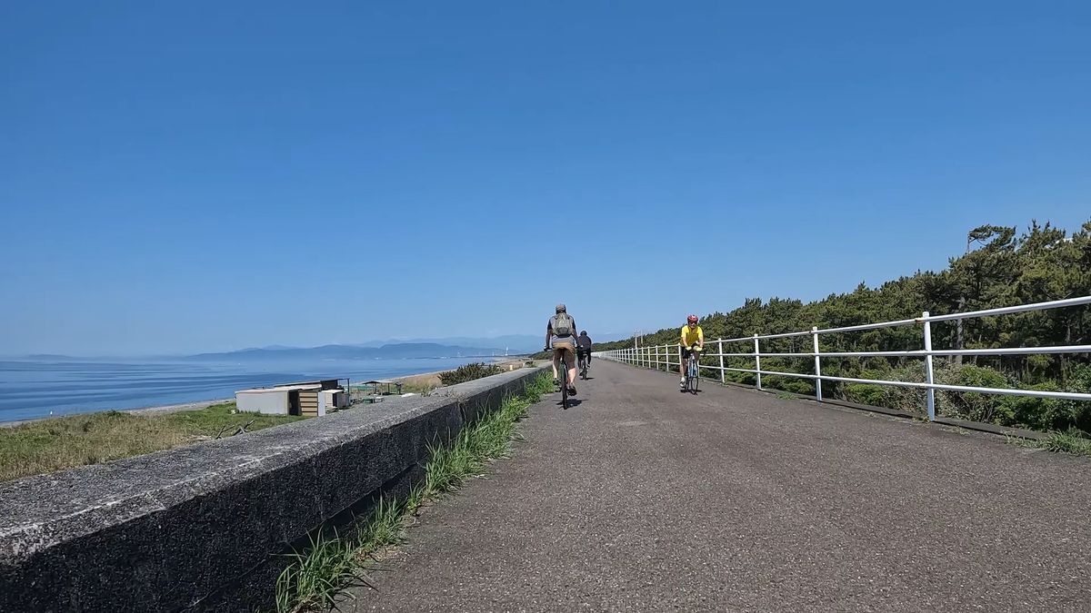 After the descent, I stopped by another konbini for another break, ate some chocolate bars and drank water. I started the ride again in the flatlands. It was boring again until I reached the coastline. I saw that there's a cycling path at the seawall, similar to the riverwalls in Tokyo, so I went there and it was well worth it.