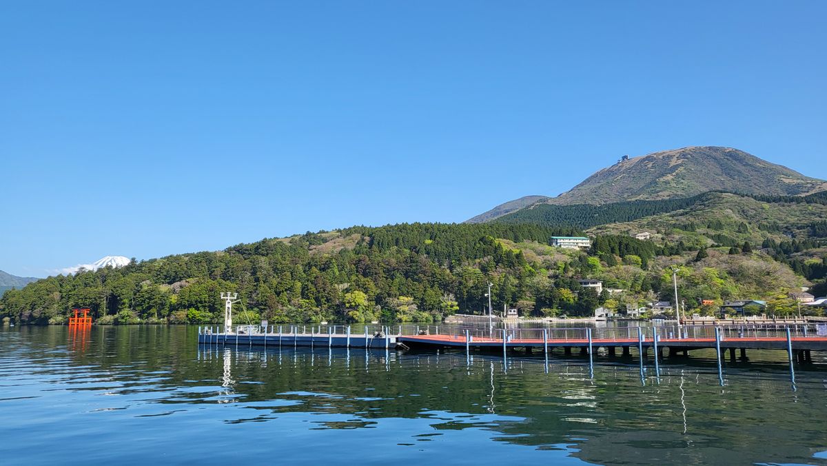 I got to the top at around an hour and there seems to be nothing but the road at the top so I descended for a bit. I arrived at Lake Ashi, greeted by a giant torii gate.