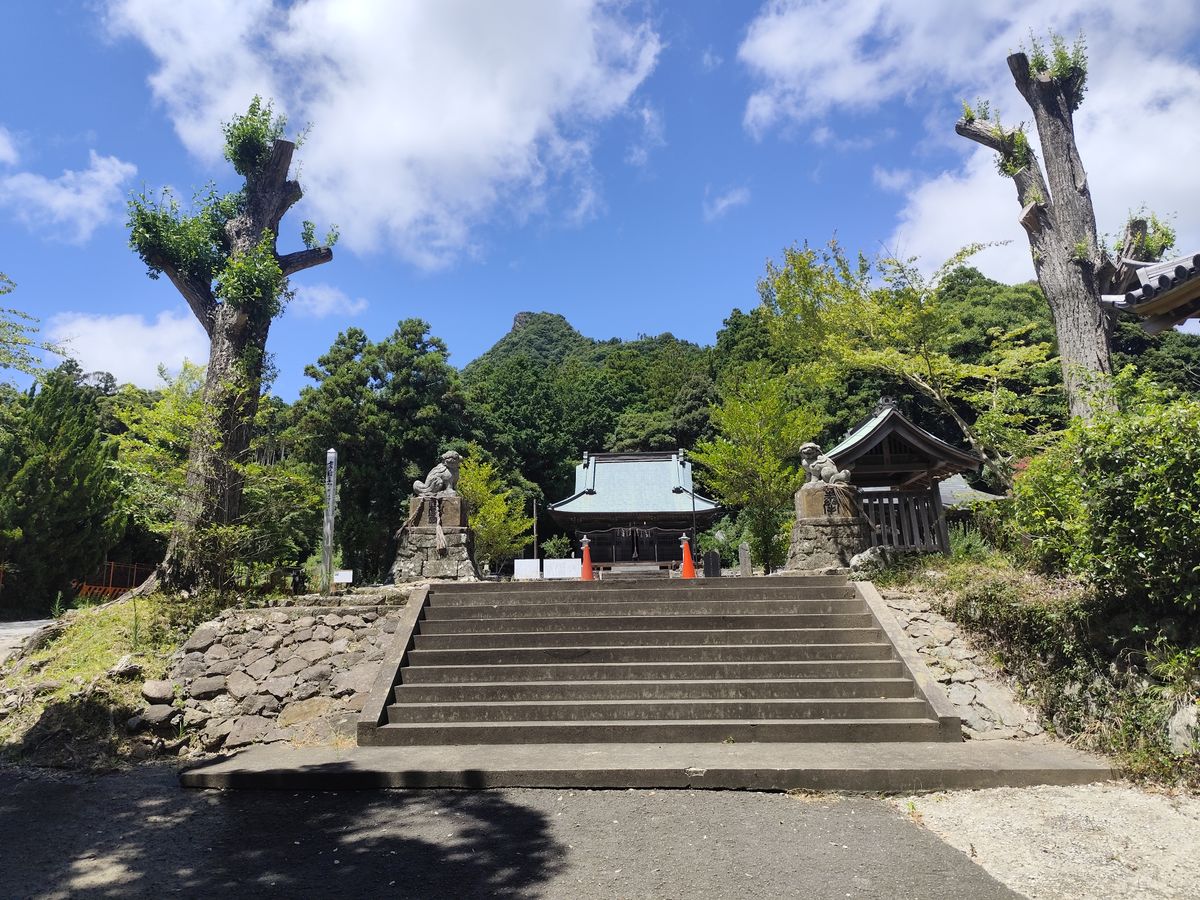 This is a nice shot of the shrine showing Mt. Iyogatake at the back of the shrine. And this is also where I first saw a person and he's also climbing the mountain.