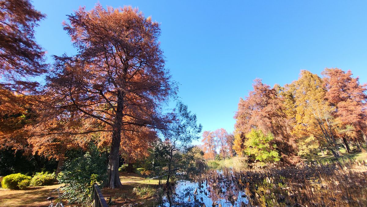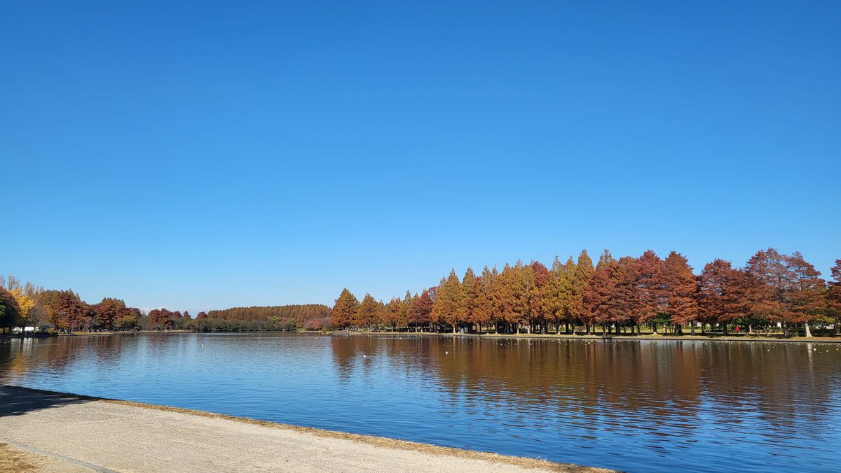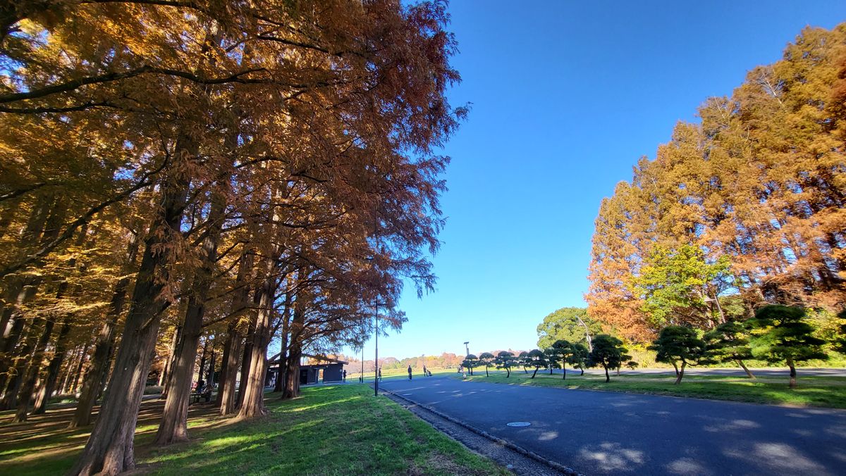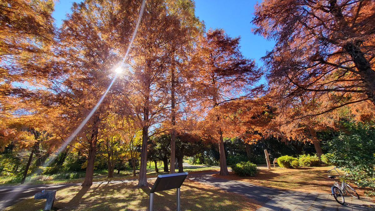 But then comes December. The weather is getting colder and colder and the trees are turning brown. I also see a lot of yellow trees around the area I live in so I decided to look-up nearby parks. I was able to see some fall foliage in the many small parks of Arakawa river and it looks really nice! Everything was brown, orange, and yellow. I decided to look for a larger park. I cycled to Shinjuku Gyoen Mae near my office and also to the famous Yoyogi Park. But the amount of people in these parks are too much for me to enjoy. Yeah it looks good, the yellows and oranges are at peak but it's just too crowded and hard to find peace and enjoy the surroundings. Then I remembered that I visited a park during summer in Katsushika City which features a Metasequoia grove—the smallest of the three Redwood species. I was living in Adachi City that time and it was somewhat nearby my area so I rode my bike and went there on the weekend.