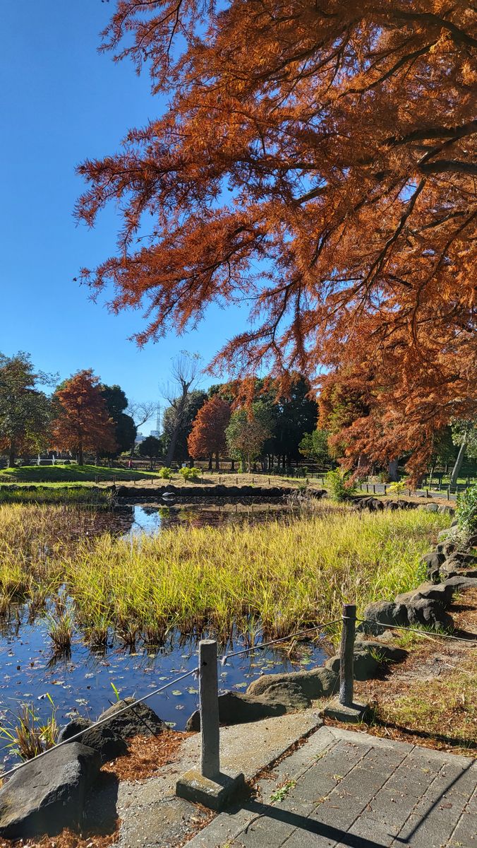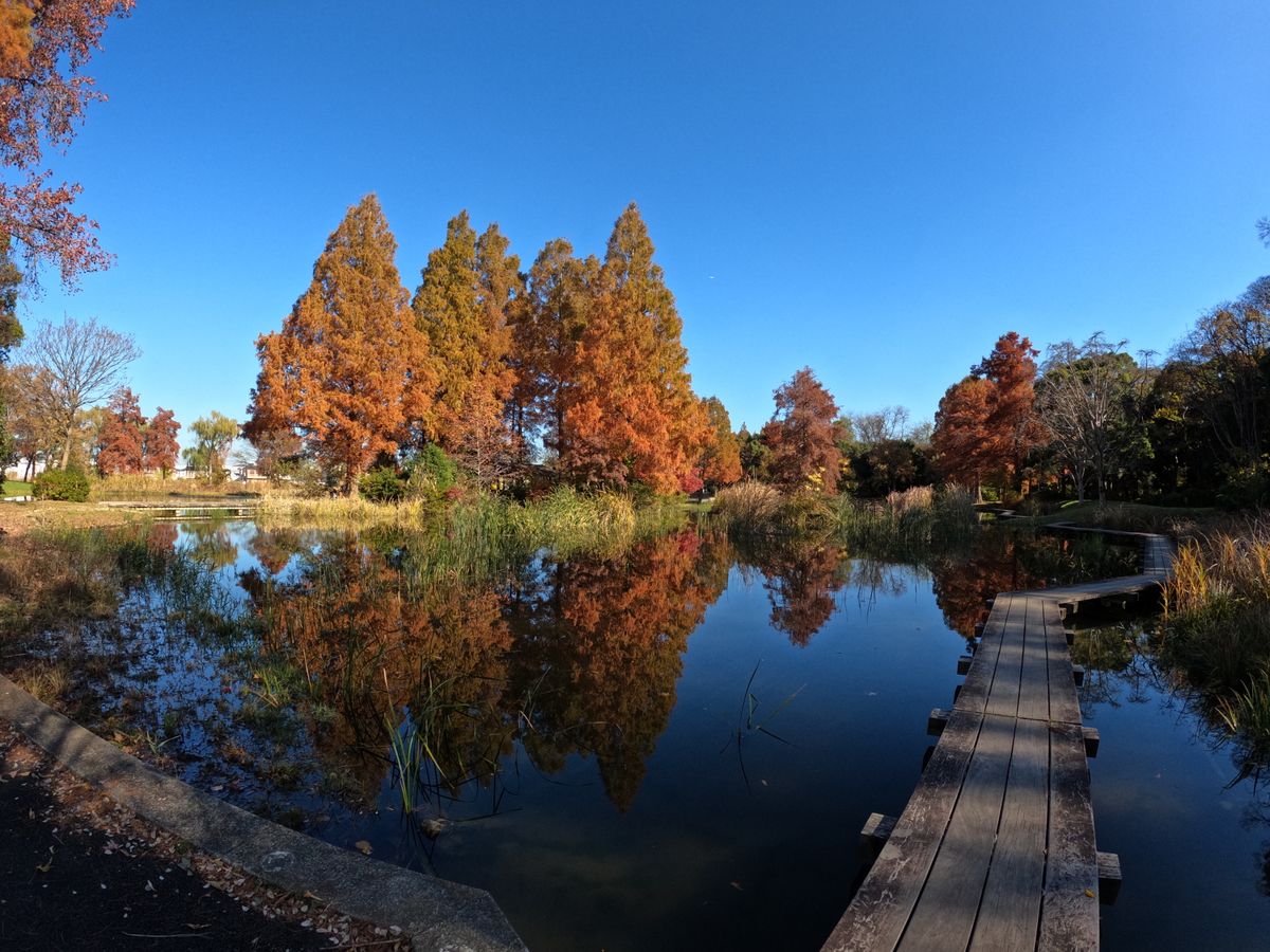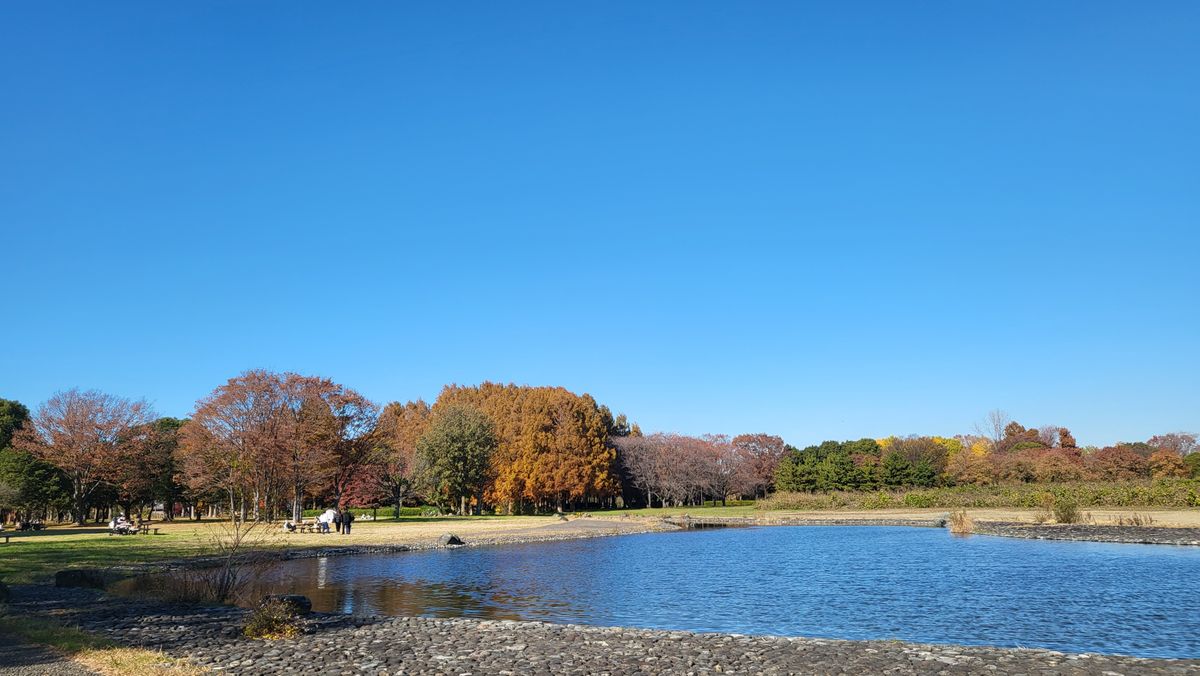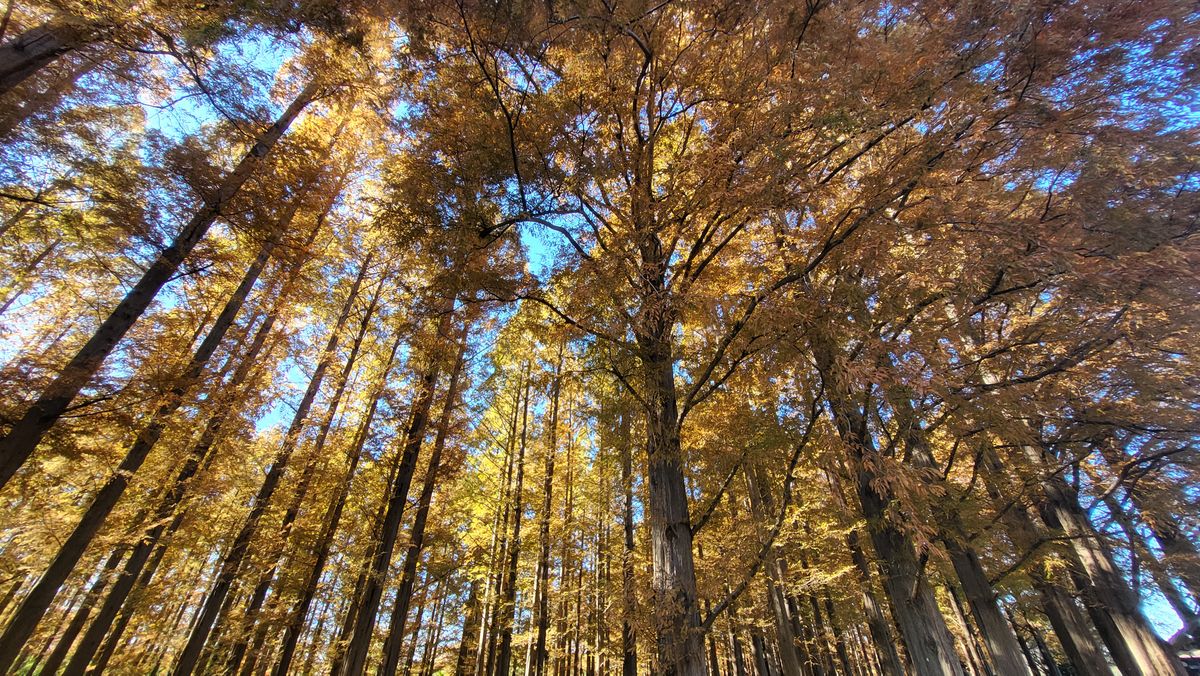 But then comes December. The weather is getting colder and colder and the trees are turning brown. I also see a lot of yellow trees around the area I live in so I decided to look-up nearby parks. I was able to see some fall foliage in the many small parks of Arakawa river and it looks really nice! Everything was brown, orange, and yellow. I decided to look for a larger park. I cycled to Shinjuku Gyoen Mae near my office and also to the famous Yoyogi Park. But the amount of people in these parks are too much for me to enjoy. Yeah it looks good, the yellows and oranges are at peak but it's just too crowded and hard to find peace and enjoy the surroundings. Then I remembered that I visited a park during summer in Katsushika City which features a Metasequoia grove—the smallest of the three Redwood species. I was living in Adachi City that time and it was somewhat nearby my area so I rode my bike and went there on the weekend.