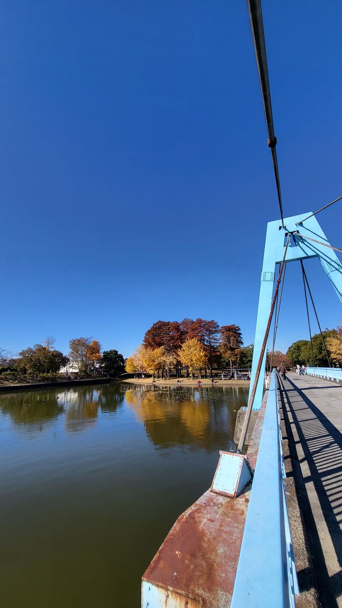 You can follow the path to go around the pond. A lot of areas without people so you could take pictures as much as you want. Continuing the path I came across a blue bridge.
